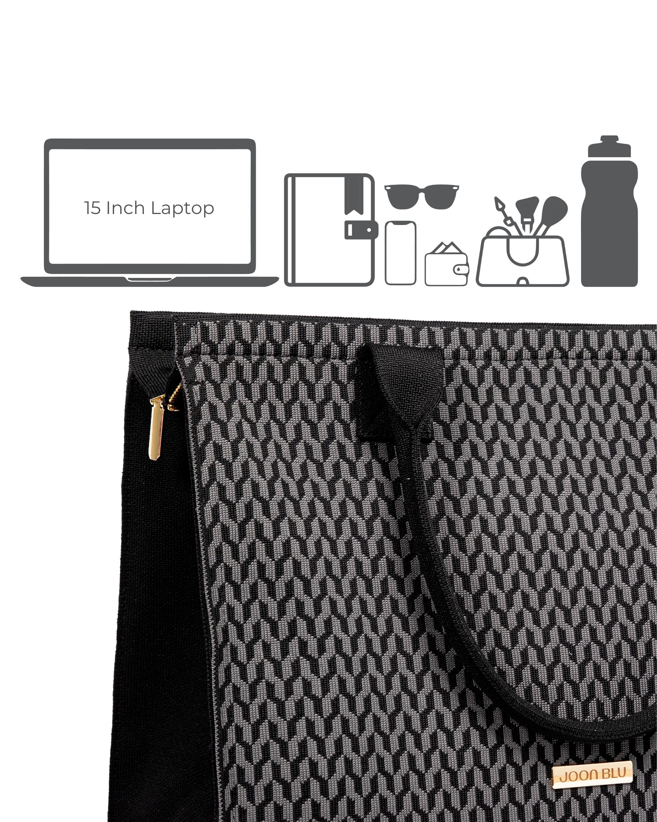 Looking for a structured tote bag that can carry all your work essentials? Here's Grandeur Large laptop and travel bag, a perfect companion for those on-the-go moments. With plenty of space for everything you need, this tote is ideal for office days or classes. And let's be honest, when it comes to hauling, bigger is always better!