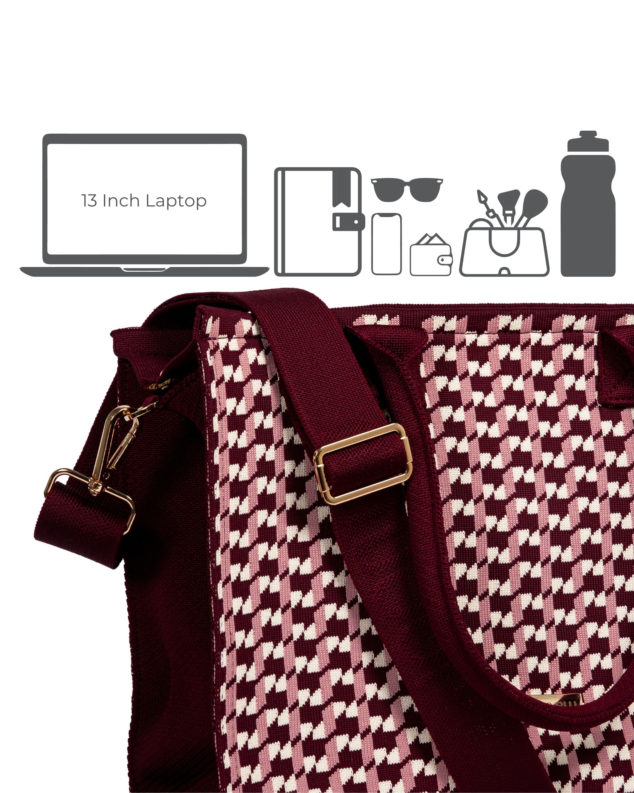 Trying to fit all that stuff in your bag? Don't let the compact size dishearten you. This medium size women's laptop tote bag boasts 15 liters of capacity, comes with a padded laptop compartment, an additional zipper pocket for valuables, a key leash, a bottle holder band & more. Bonus points for the fully detachable and adjustable crossbody belt for extra comfort! Carry it for meetings, travels, office, or shopping.