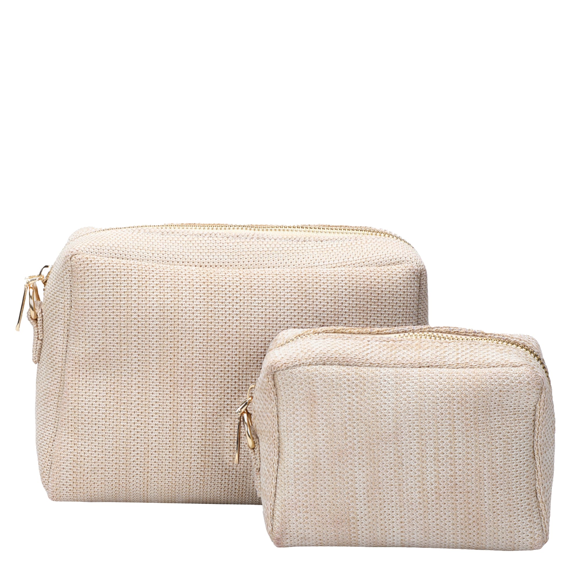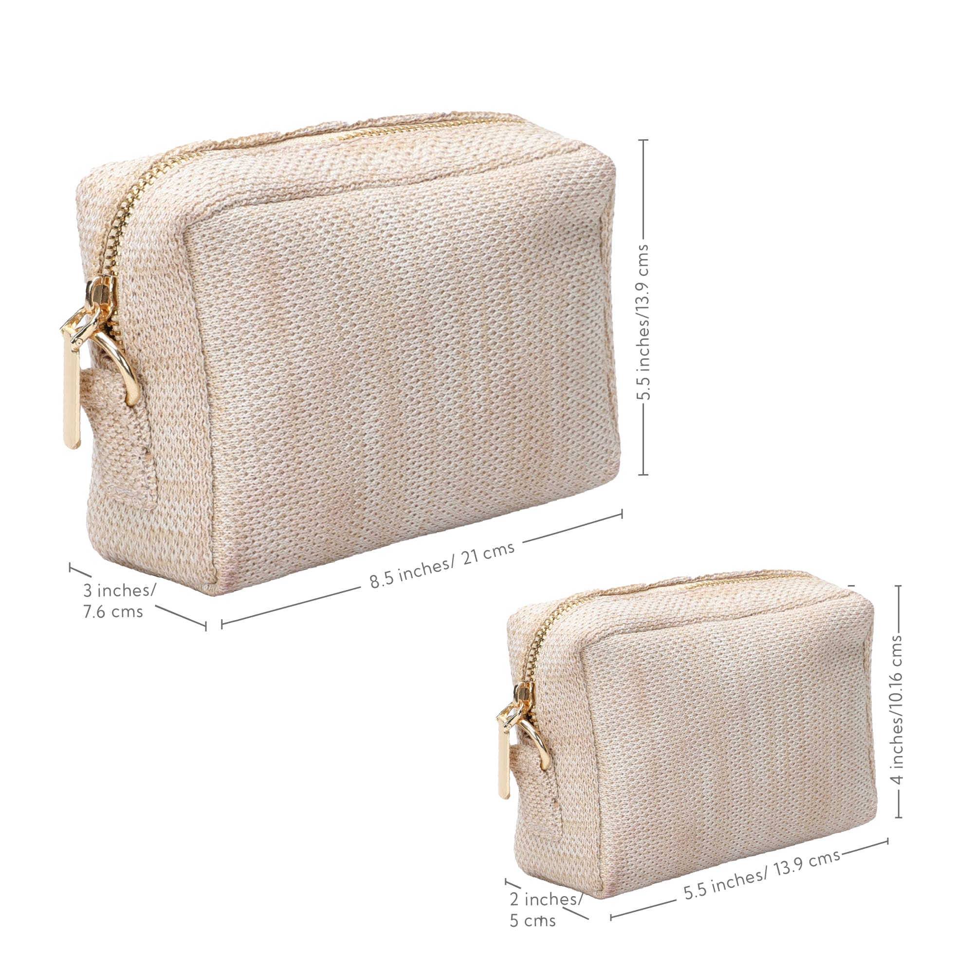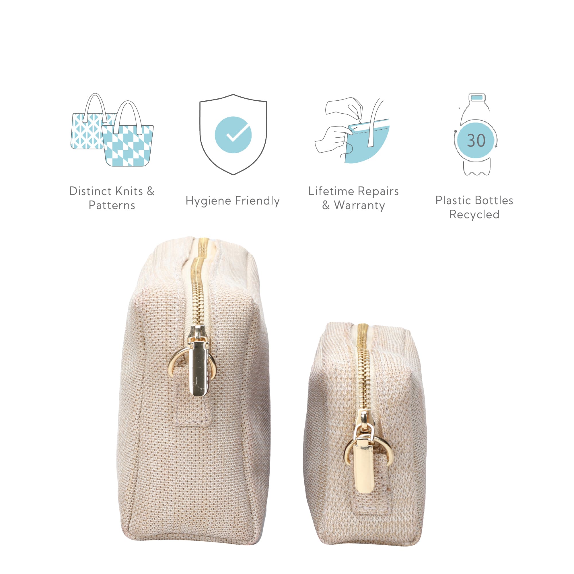 The Aura Big pouch is spacious enough to fit all your makeup, skincare & even brushes, whereas the smaller one keeps your keys, coins & tiny essentials separate & accessible. They are light, washable & ever lasting!