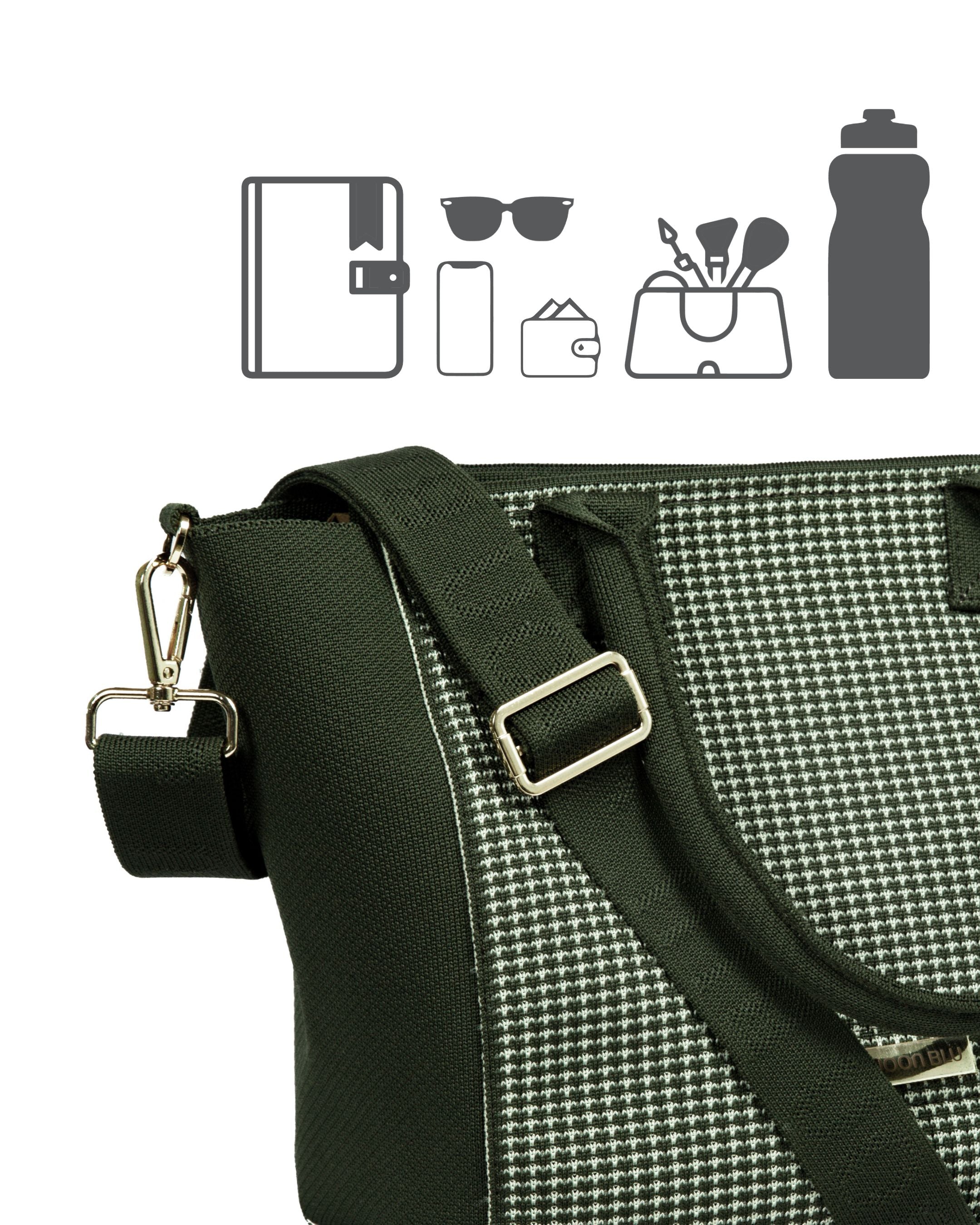 The checkered Tessellate pattern in olive beige makes it the perfect accessory for those who value simplicity, functionality, and versatility in their everyday carry-all.