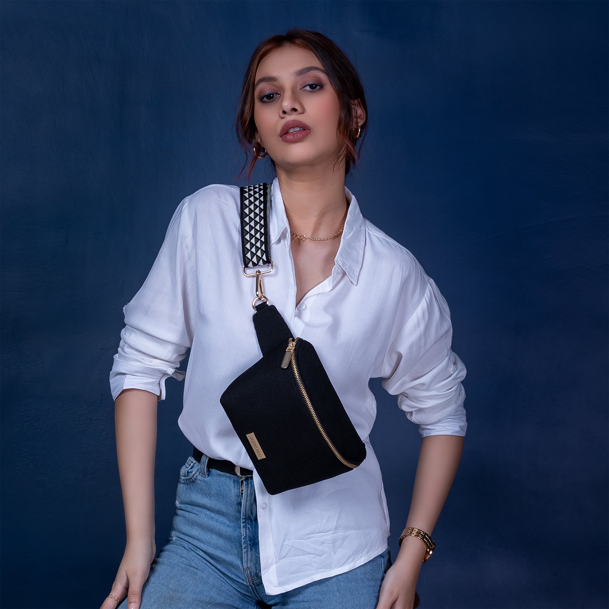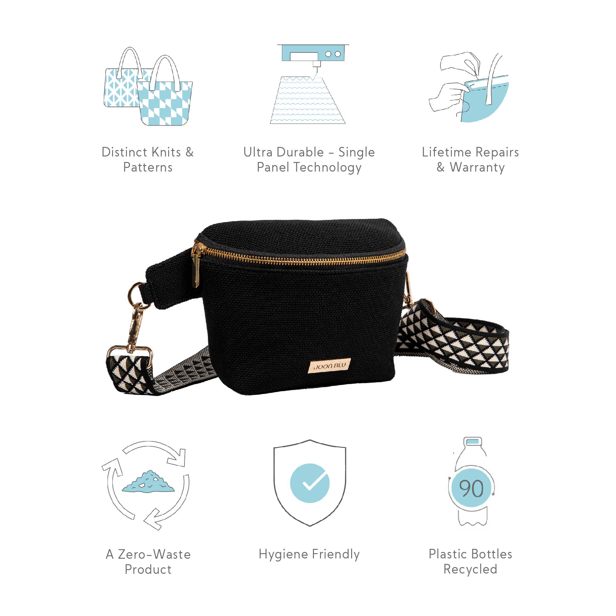 The cutting-edge recycled materials, offering a blend of durability, softness & washability. Incorporating recycled, reusable, and upcycle-able elements like recycled polyester and metallic hardware significantly helps us to reduce our environmental footprint.