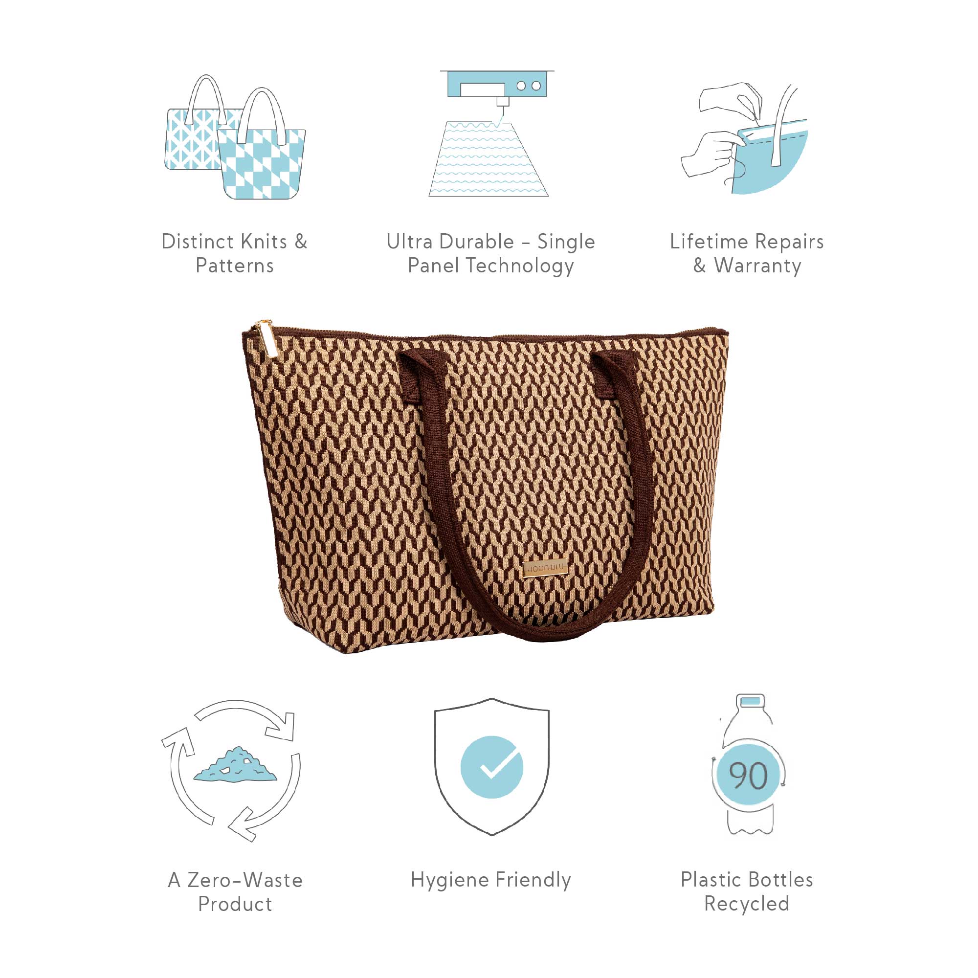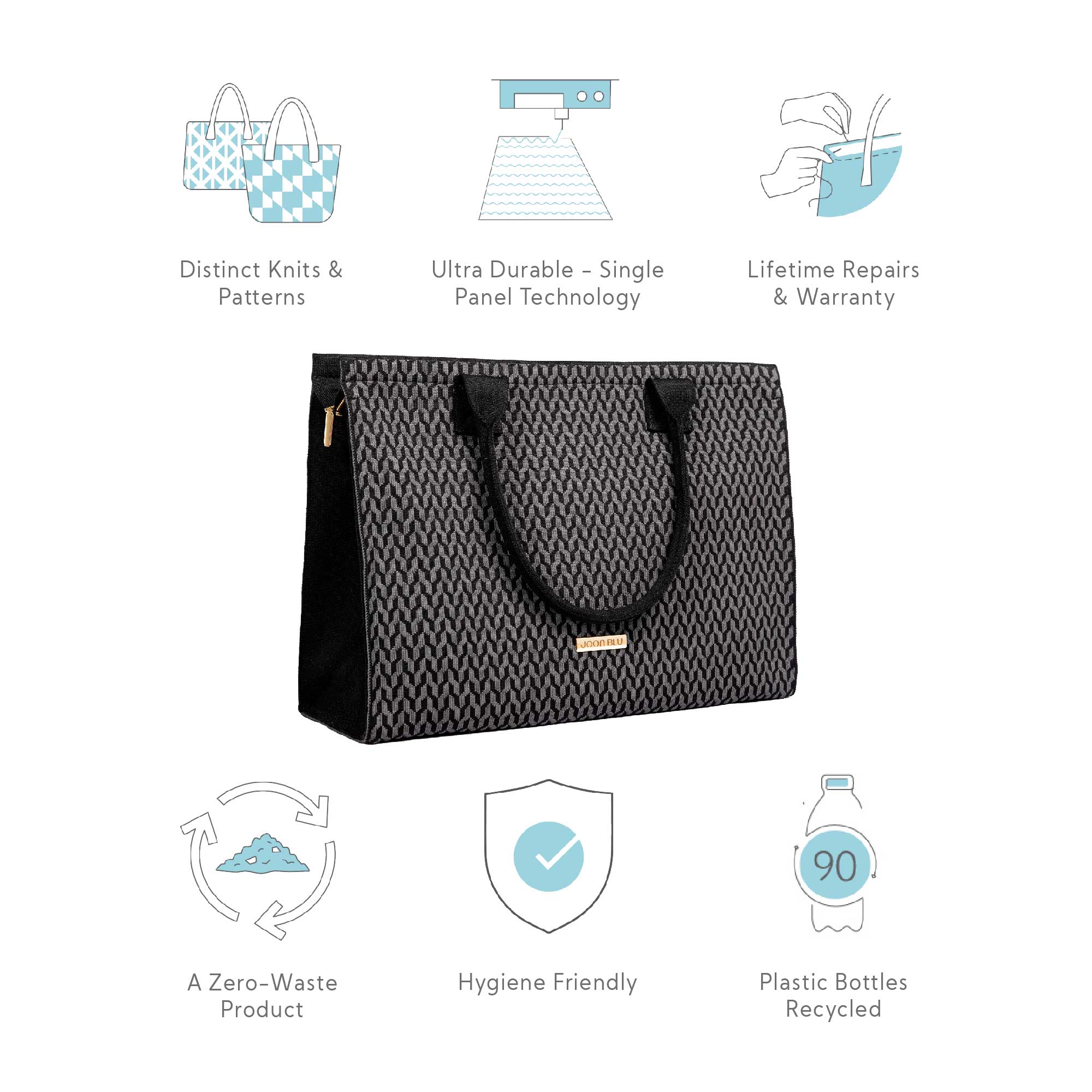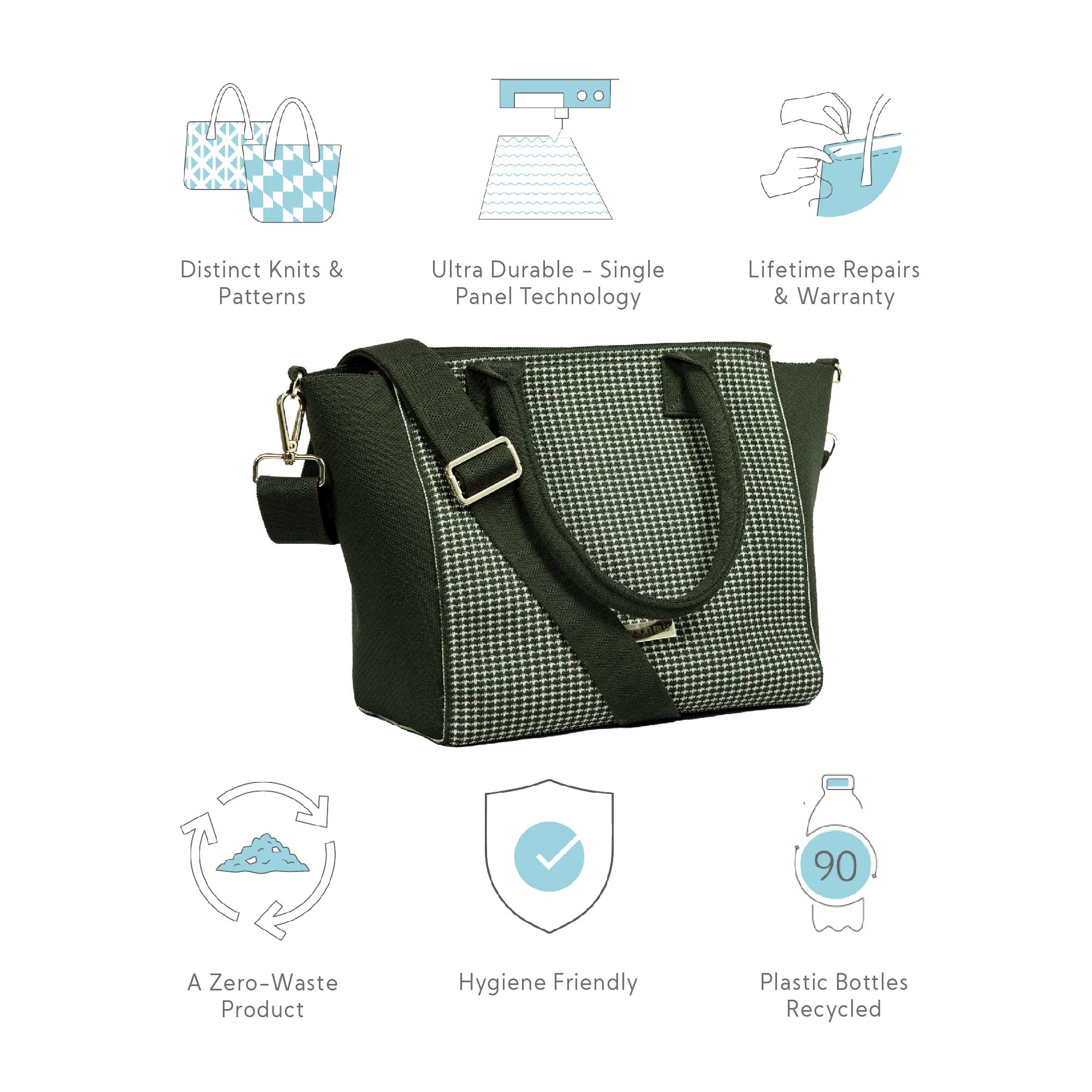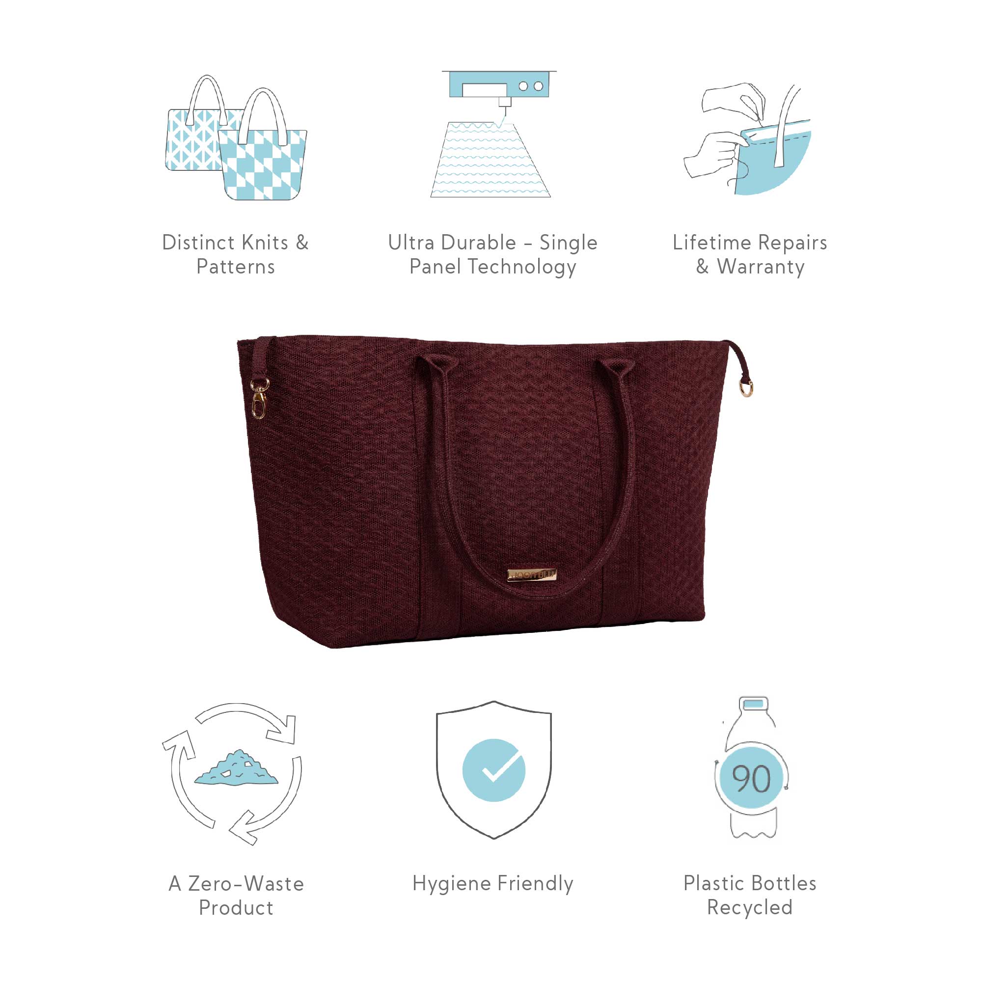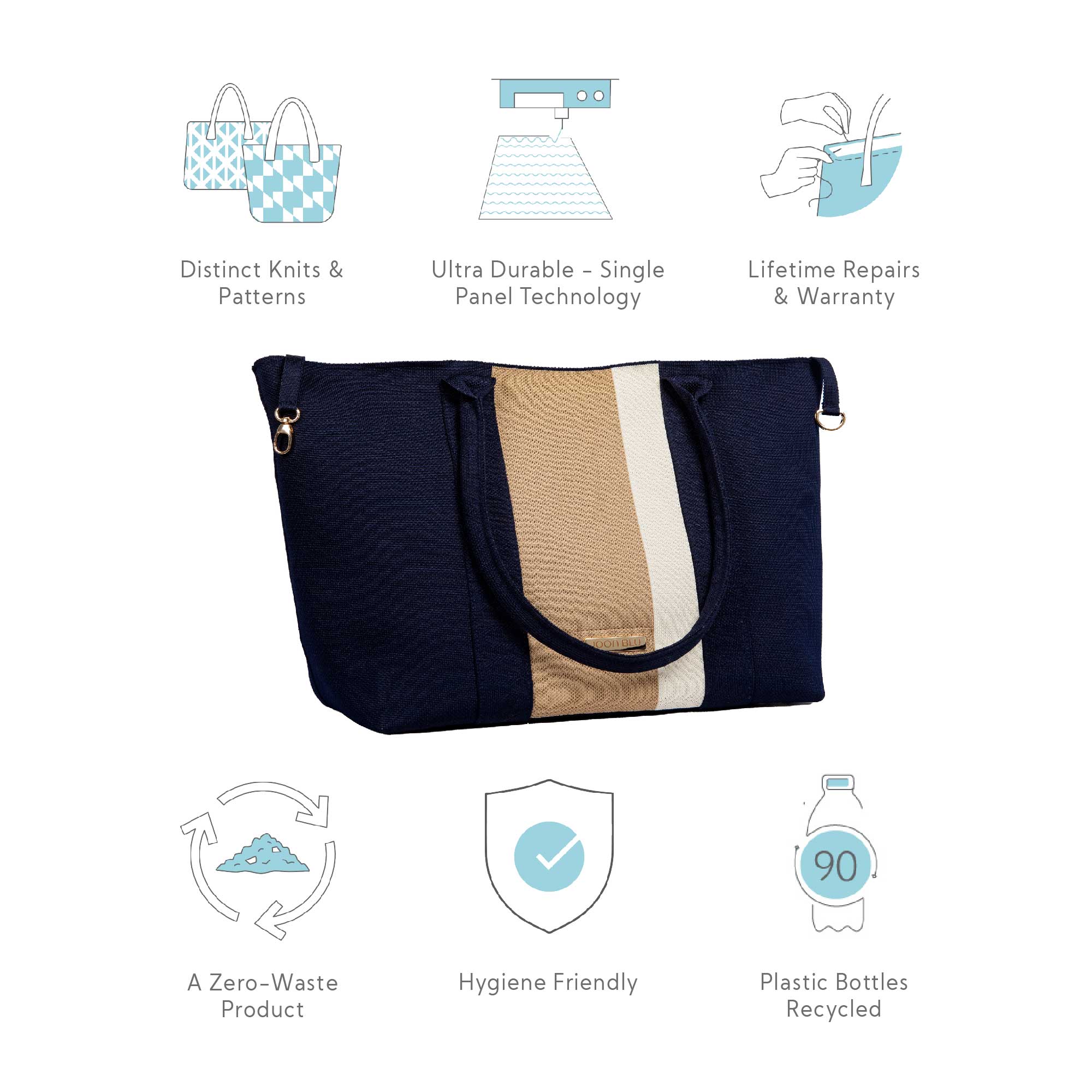 Each bag we create is made from recycled PET bottle yarns, keeping thousands of tons of plastic from ending up in oceans & landfills and gaining a new, durable life at the same time.
